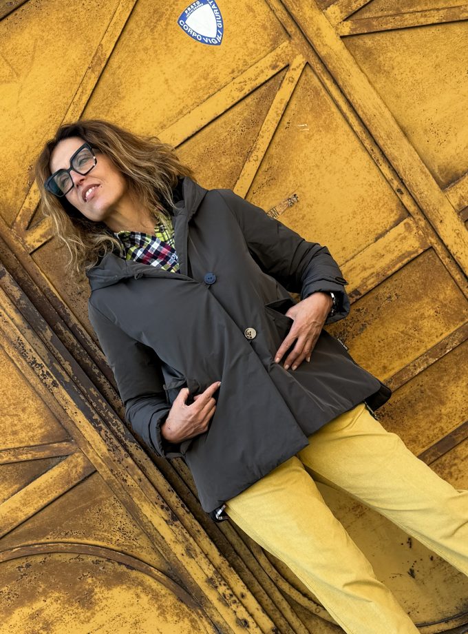 Un capo splendido senza tempo. Cappotto slim doppiopetto chiusura con due bottoni , senza collo. Linea appoggiata e cintura in tessuto.