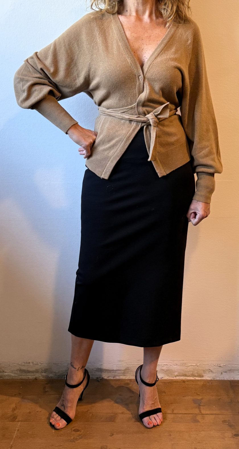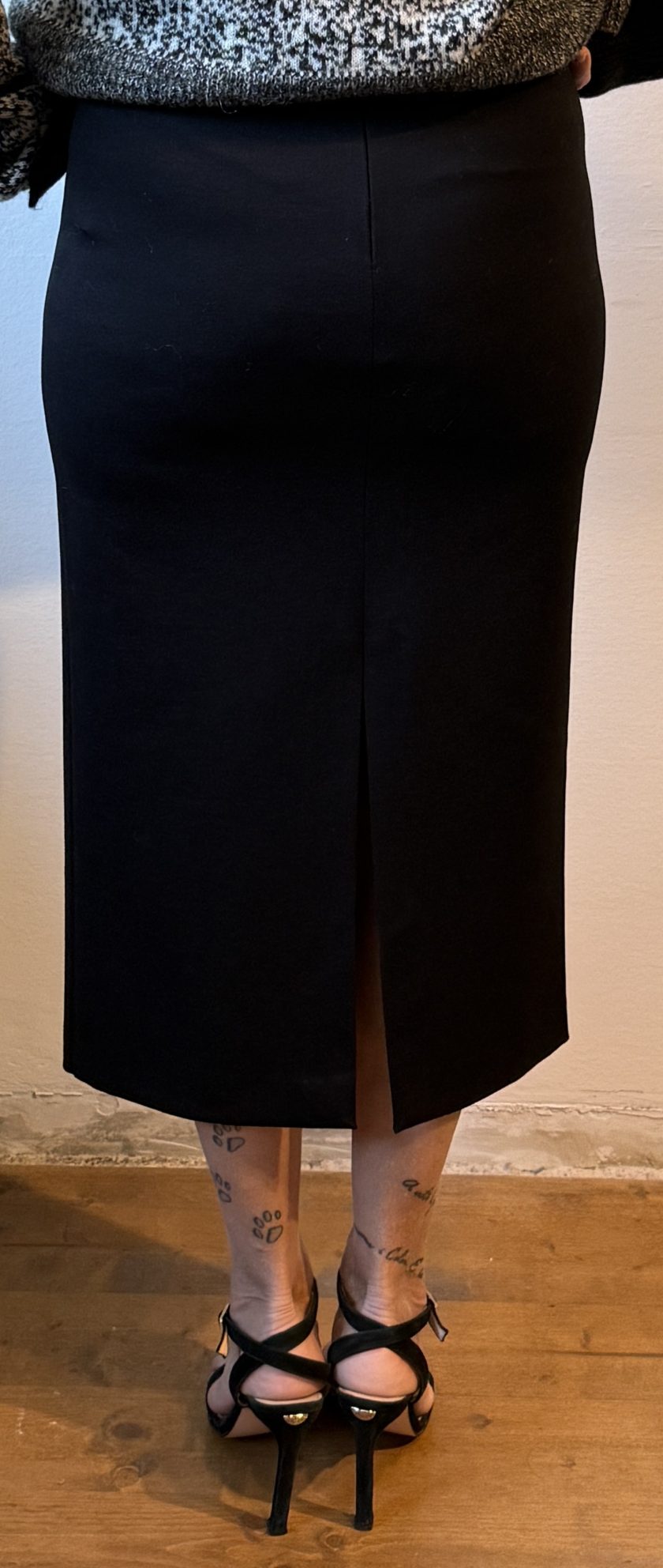 Minimalismo e silhouette avvolgente si incontrano in questa gonna midi firmata Manila Grace. Il design tubolare con vita alta valorizza la figura in modo sofisticato. Dettaglio cinturino e passanti alla vita, spacco profondo sul dietro. Materiale : 64% VISCOSA, 31% POLIAMMIDE, 5% ELASTAN Colore : Nero.