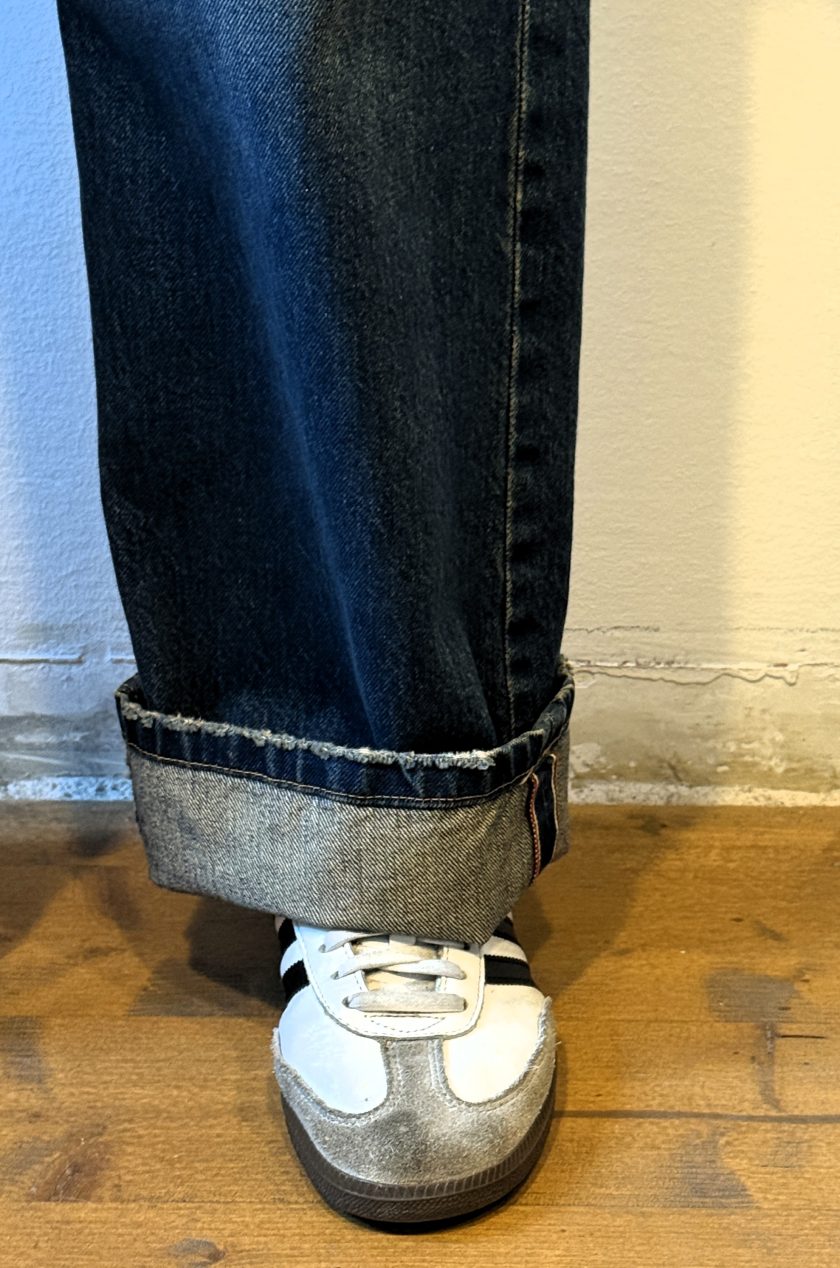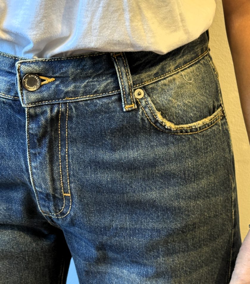 Jeans modello 5 tasche lavaggio medio scuro con rifiniture usurate e tocco vintage .Made in Italy.