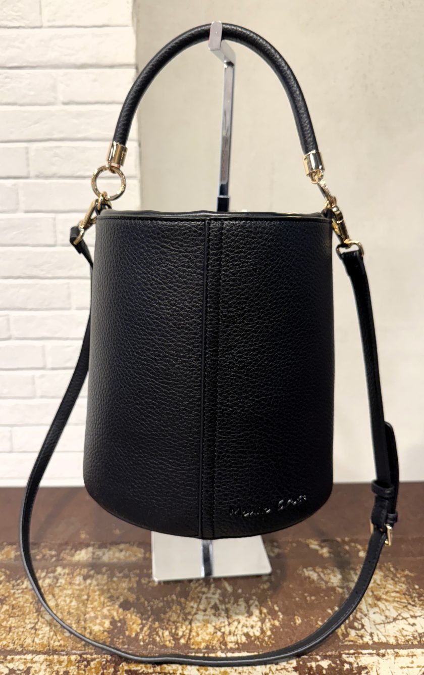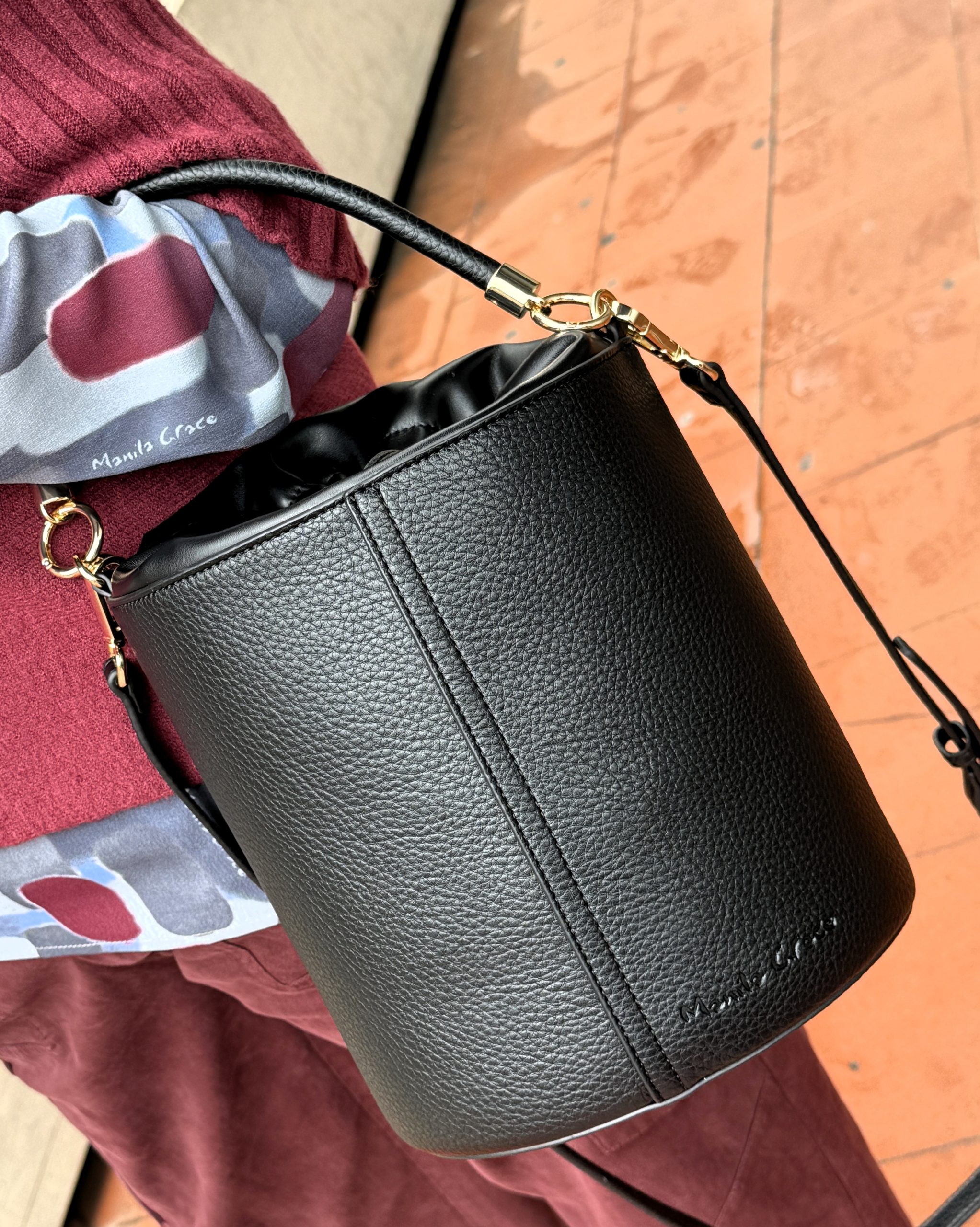 Raffinato e moderno, questo secchiello Manila Grace dal formato compatto è l’accessorio perfetto per dare un tocco elegante al look. Realizzato in ecopelle martellata, è completato da una pratica chiusura con coulisse e manico ad anello rigido. Ideale da portare a mano o con tracolla per uno stile versatile e quotidiano.