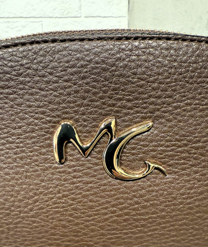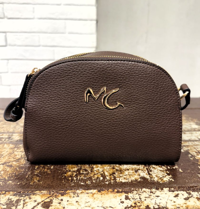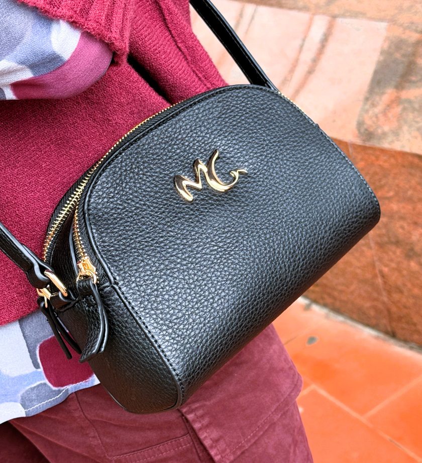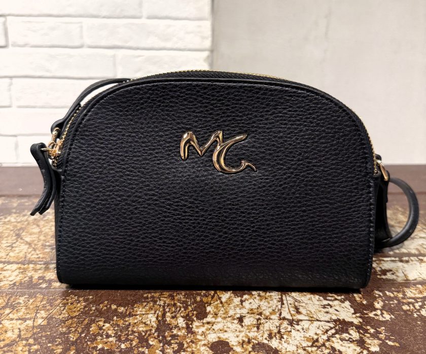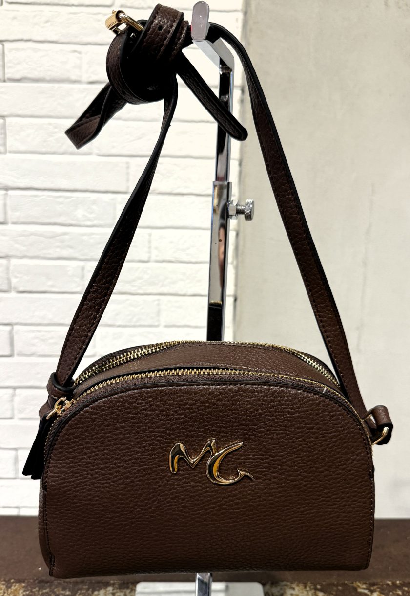 Misure contenute, ma ugualmente molto capiente la tracollina in ecopelle martellata logo Mg sul davanti doppia zip taschina interna tracolla regolabile e rifiniture dorate.